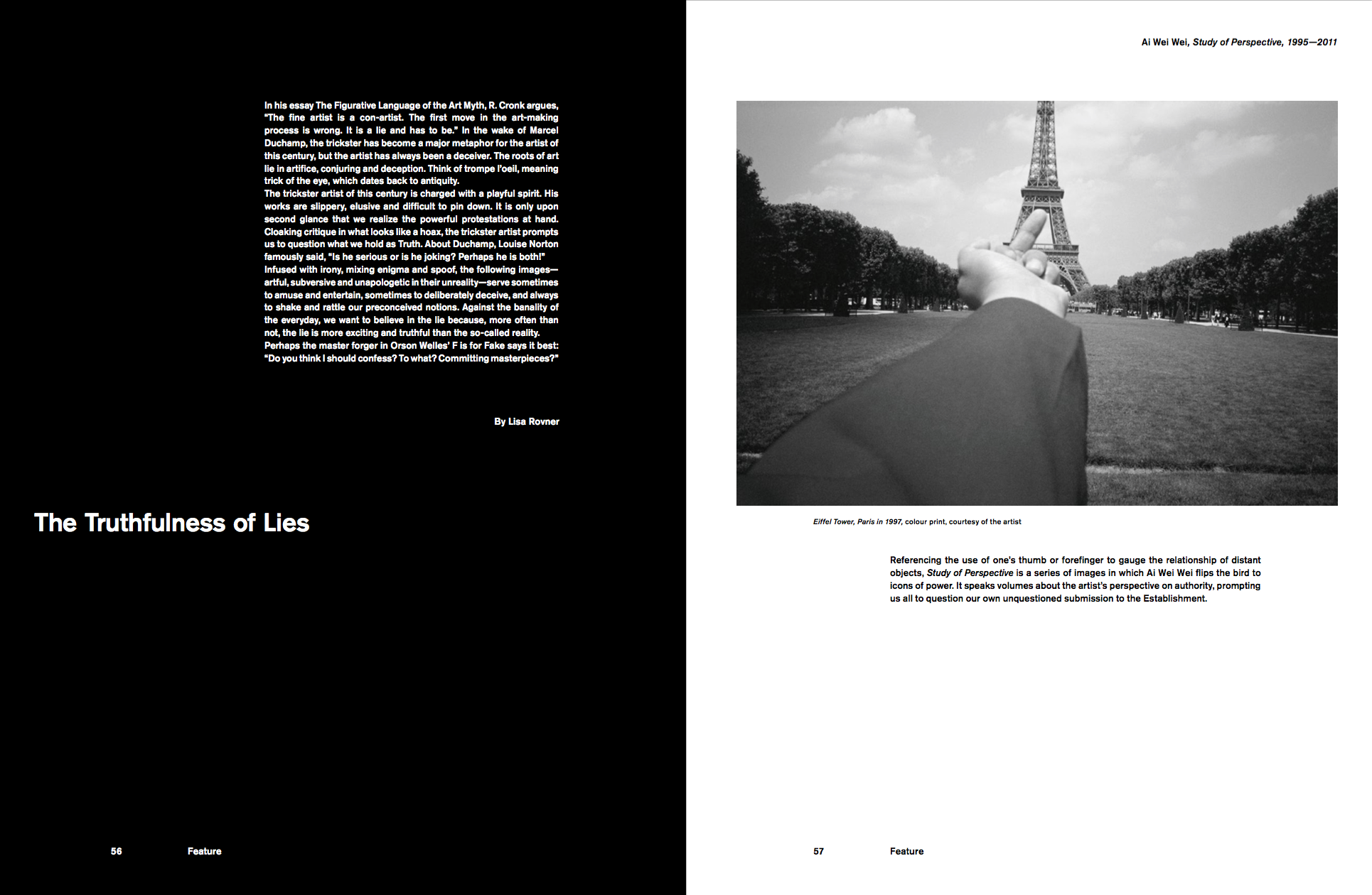 Perhaps the master forger in Orsen Welles "F is for Fake" says it best: "Do you think I should confess? To what? Committing masterpieces." Featuring the works of Joan Fontcuberta, Maurizio Cattelan, Ai WeiWei, Bruce High Quality Foundation, the Crescent Star tricksters, Harry Houdidi, Peter Coffin, Adam McEwen and Bernaut Smilde.
