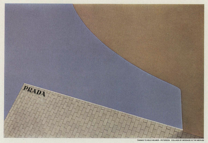 Reinterpreting KELD HELMER-PETERSEN's photograph, replacing an original Texaco logo, with Prada's signature. It becomes a "mise en abyme", or in other words a dream within a dream: modernity within modernity and, in its final incarnation as a billboard, architecture within architecture: in other words, Prada within art.